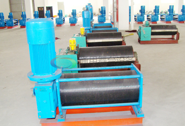 卷揚(yáng)系統(tǒng)包括電機(jī)、減速器、制動(dòng)器、卷筒、滑輪裝置還有鋼絲繩等。